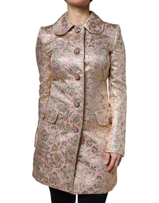 Dolce & Gabbana Metallic Pink Gold Jacquard Jewel Button Coat Jacket