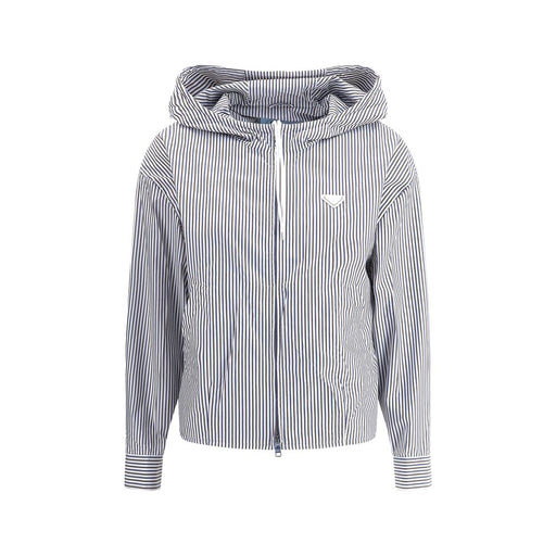Original price $2,347.94Current price $1,942.19| /Prada’s Striped hooded Jacket combines urban style and functionality. The double-slider front zipper closure allows for convenient adjustment, whil...
