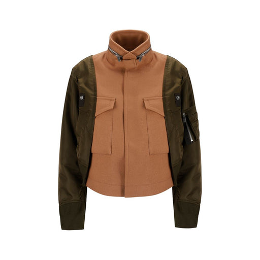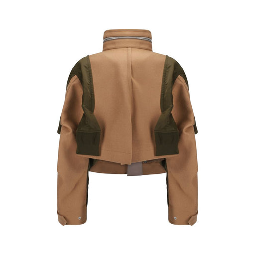 Original price $2,239.74Current price $1,164.23| /Wool Jacket by Sacai, cropped pattern, paneled design, front closure by double-slider zipper and buttons, zippered welt pocket attached to left sle...