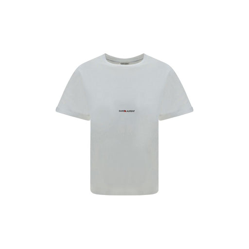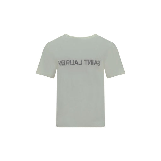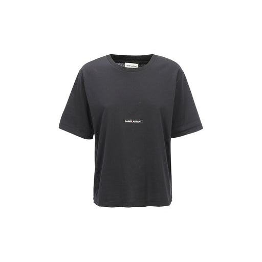 Original price $648.74Current price $617.90| /Cotton T-Shirt by Saint Laurent, ribbed crew neck, contrasting iconic brand monogram on front, monochrome pattern, regular fit.