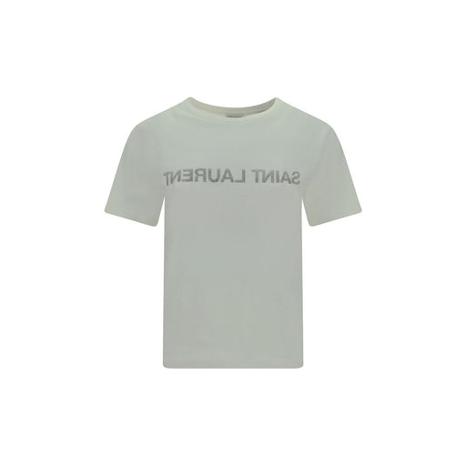 Original price $638.38Current price $550.74| /Cotton T-Shirt by Saint Laurent, ribbed crew neck, contrasting iconic brand monogram on front, monochrome pattern, regular fit.