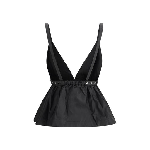 Original price $357.06Current price $305.12| /Duchesse Top by Ganni, off-the-shoulder design, deep V-neck at front, adjustable at bust by buckle, slightly flared at hem, side zipper closure, mo...