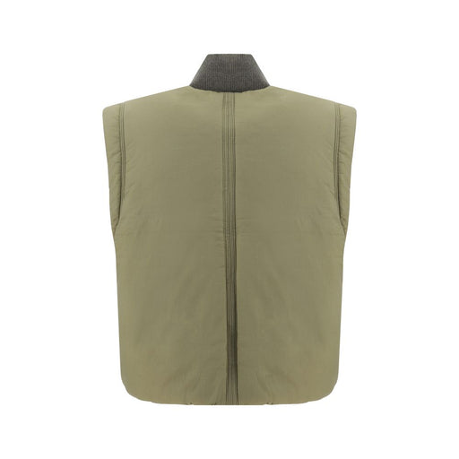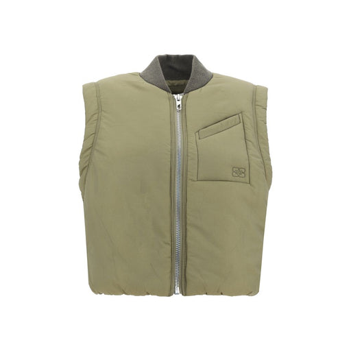 Original price $357.06Current price $292.14| /Vest by Ganni, cropped design, ribbed crew neck, front zipper closure, front slit pocket, iconic brand logo embroidered on front panel, all-over qu...