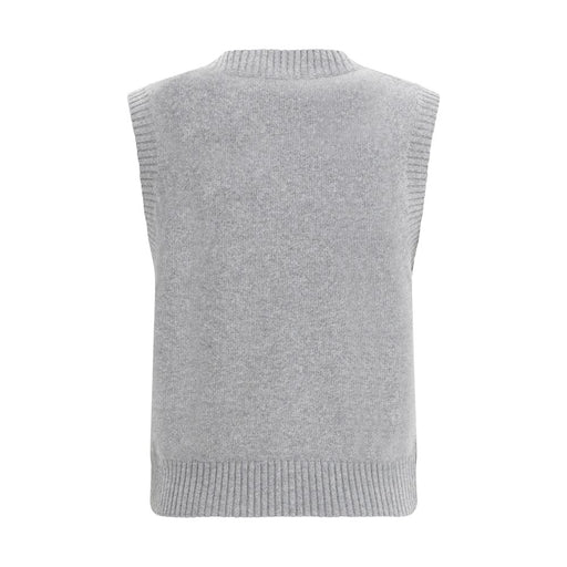 Original price $280.86Current price $268.42| /Wool Vest by Ganni, ribbed crew neck, ribbed hem, contrasting iconic brand monogram on front, regular fit.