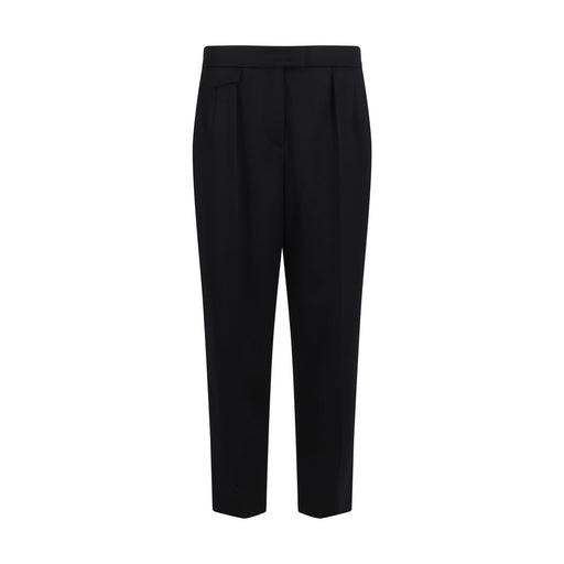 Original price $1,265.94Current price $876.42| /Wool Pants by Giorgio Armani, front zipper and hook-and-eye closure, two side welt pockets, two back welt pockets with flaps, monochrome pattern, r...
