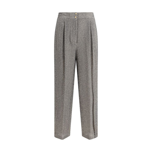 Original price $1,211.84Current price $838.55| /Virgin Wool Pants by Giorgio Armani, concealed side panel zipper closure, two side slash pockets, monochrome pattern, regular fit.