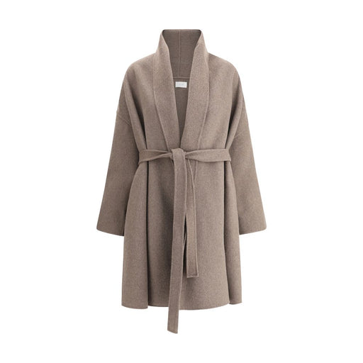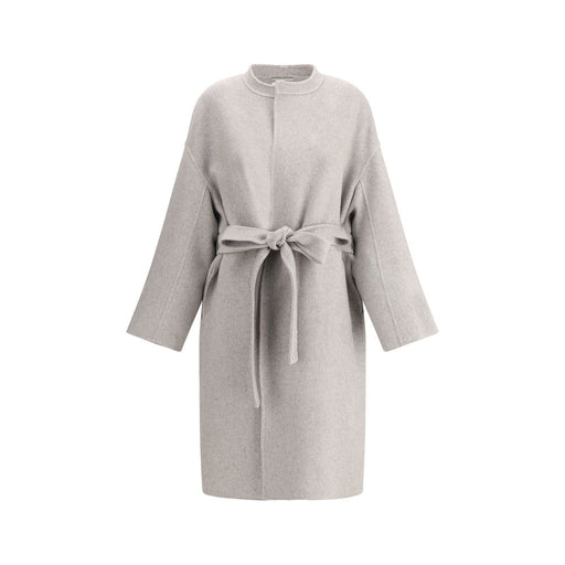 Original price $10,679.34Current price $6,968.08| /Ija Coat by The Row, shawl lapels, V-neck front, closure by knotted sash, regular fit.