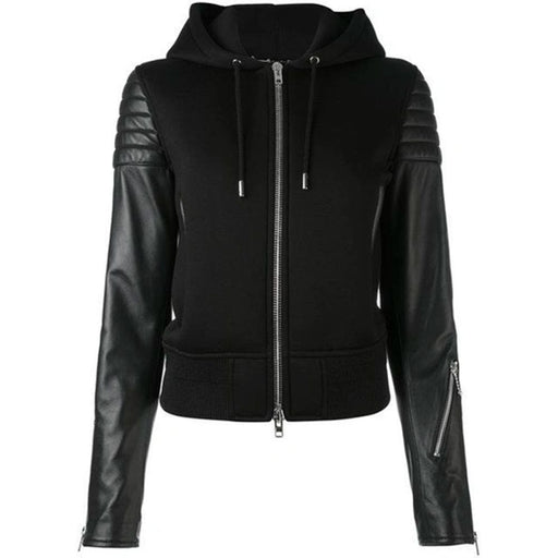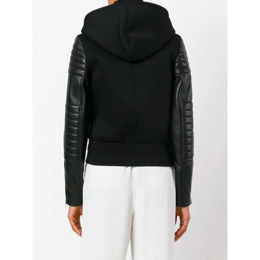 Original price $2,185.18Current price $1,443.41| /Givenchy viscose hooded jacket with lambskin inserts, silver hardware. Made in Italy