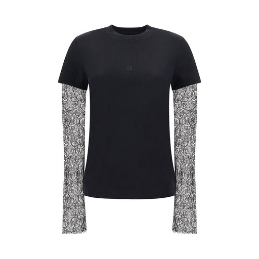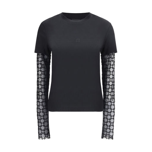 Original price $897.60Current price $724.48| /Cotton Long Sleeve Jersey by Givenchy, double layer pattern, semi-transparent lace sleeve detail, monochrome short sleeve outer layer, iconic 4G lo...