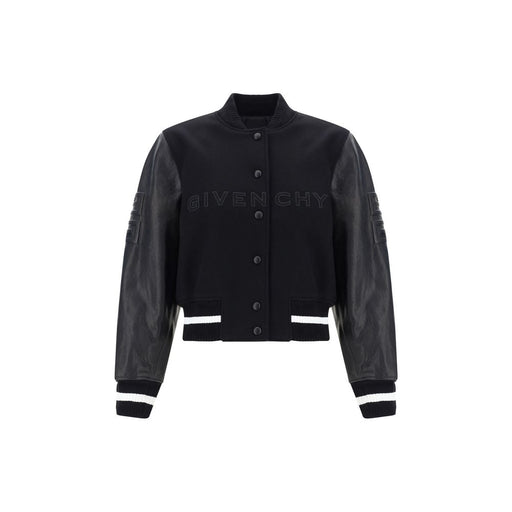 Original price $3,538.14Current price $2,477.78| /Wool College Jacket by Givenchy, front snap button closure, classic ribbed collar, ribbed cuffs, two side welt pockets, ribbed hem, iconic brand mo...