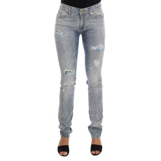 Original price $718.43Current price $317.65| /Premium quality denim Trendy blue wash Edgy torn design Slim fit silhouette Stretch fabric for comfort Versace Jeans logo patch on the back Materi...