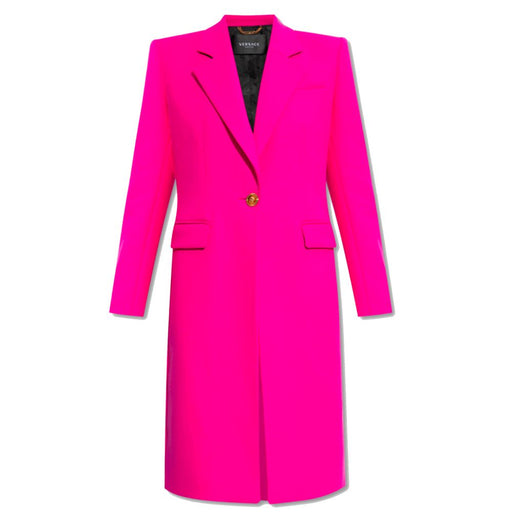 Original price $3,267.18Current price $2,152.66| /Versace wool long coat, fuchsia color, buttons with house logo, two-pocket design. Made in Italy