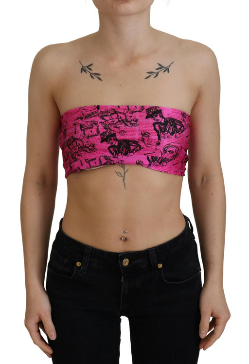 John Galliano Chic Pink Newspaper Print Cropped Top