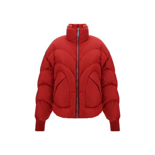 Original price $1,969.24Current price $1,060.36| /Corazon Shiny Down Jacket by Khrisjoy, high collar, front zipper closure, ribbed cuffs, two heart-shaped patch flap pockets on front, all-over quil...