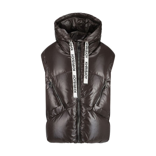 Original price $1,590.54Current price $960.82| /Khris Shiny Down Vest by Khrisjoy, other neck model with drawstring adjustable hood with contrasting iconic brand monogram detail, front zipper cl...