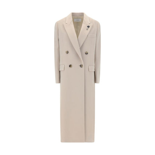 Original price $1,536.44Current price $952.16| /Fleece Wool Coat by Lardini, double-breasted design with contrasting front button closure, structured shoulders, classic lapels, two welt pockets w...