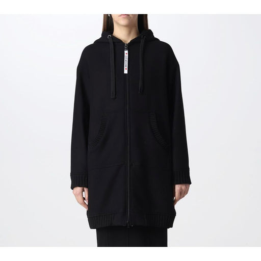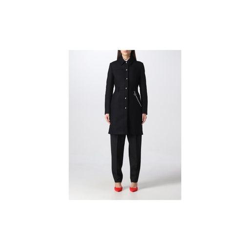 Love Moschino Elegant Black Wool Coat with Logo Detail
