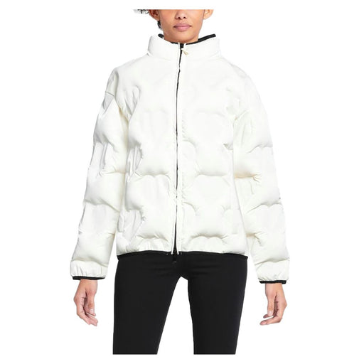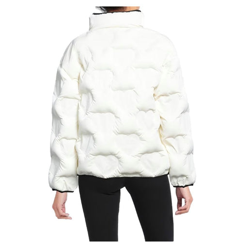 Original price $438.01Current price $340.57| /Embrace elegance with this stunning white down jacket from Love Moschino, featuring eye-catching heart decorations for a touch of whimsy. Its polye...