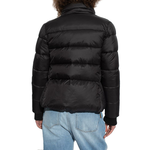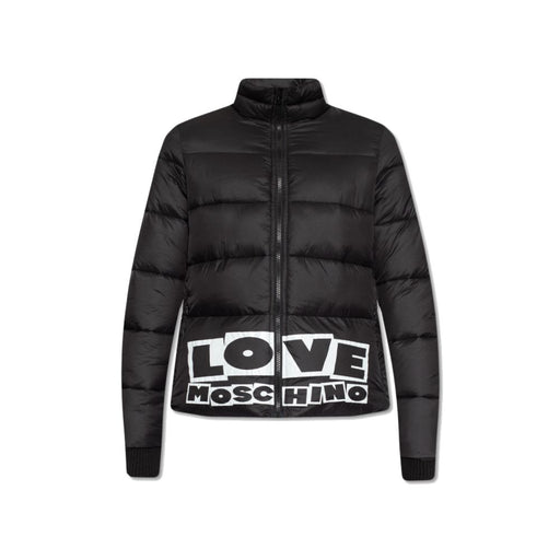 Love Moschino Chic High Collar Down Jacket with Logo Patch