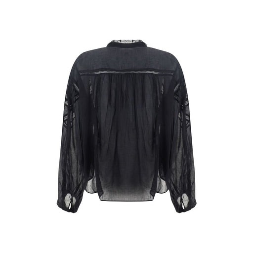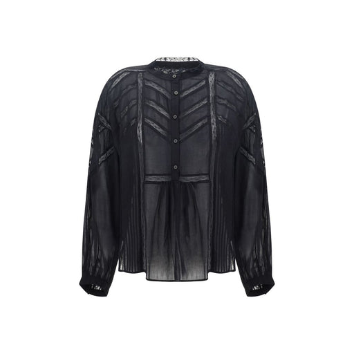 Original price $497.72Current price $403.59| /Cotton Gelma Shirt by Marant Etoile, mandarin collar with appliqué lace, half-bust buttons on front, adjustable button cuffs, semi-transparent appl...