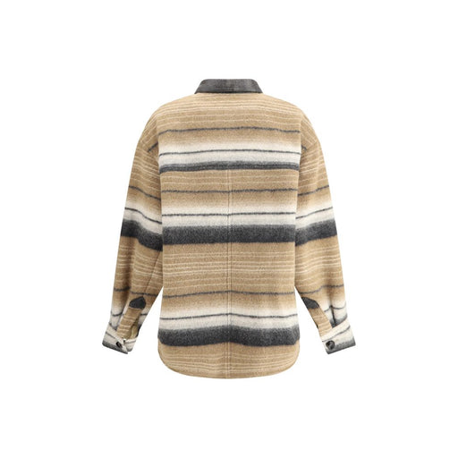 Original price $638.38Current price $521.52| /Wool Harveli Shirt Jacket by Marant Étoile, featuring a classic collar, a front closure with contrasting buttons, two flap patch pockets on the fro...