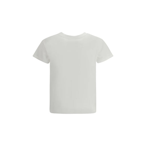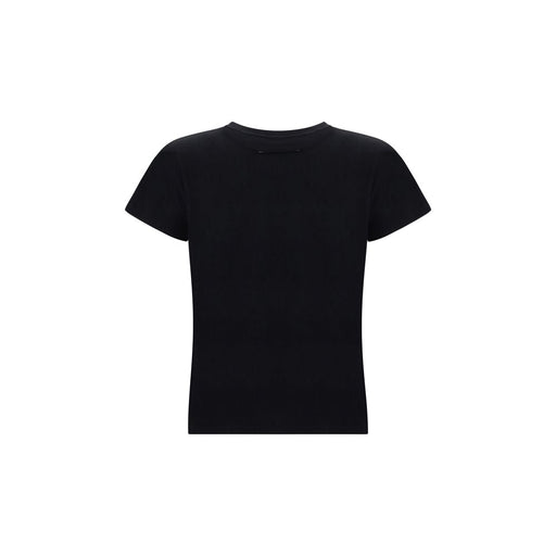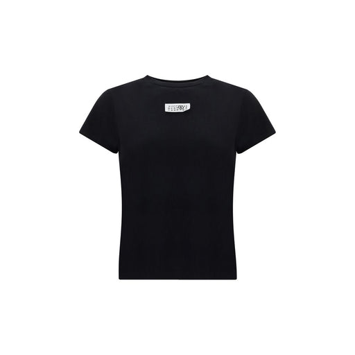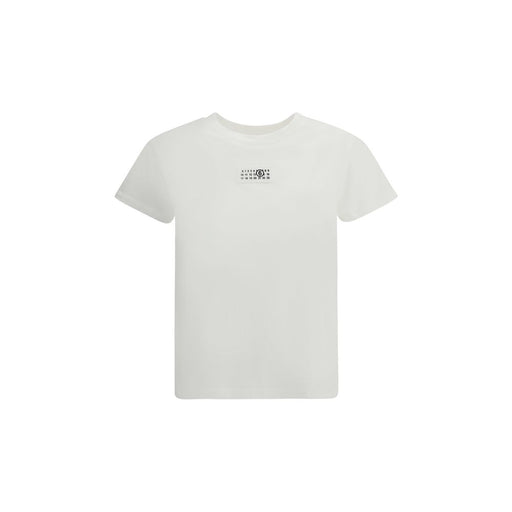 Original price $238.04Current price $220.73| /Cotton T-Shirt by MM6, ribbed crew neck, contrasting iconic brand logo patch on front, monochrome pattern, slim fit.