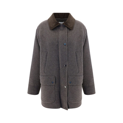 Original price $1,017.08Current price $770.38| /Wool Leak24 Jacket by P.A.R.O.S.H., classic velvet ribbed collar, front button and zipper closure, two side welt pockets, two flap patch pockets on...