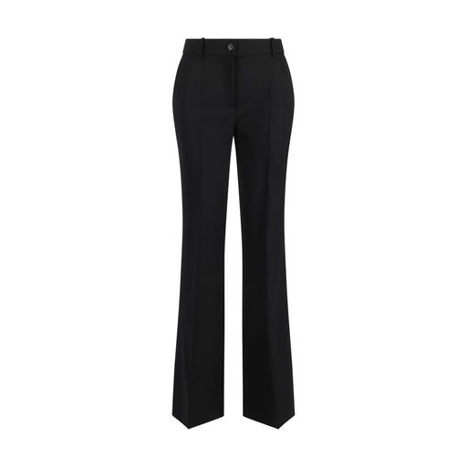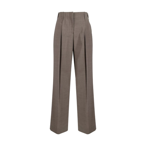 Original price $529.72Current price $399.88| /Virgin Wool Pants by P.A.R.O.S.H, wide-leg pattern, elasticized waistband, front button and zipper closure, two side slash pockets, two welt pocket...