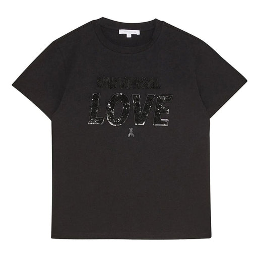 Patrizia Pepe Chic Rhinestone Embellished Black Cotton Tee