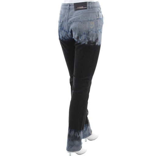 Original price $242.99Current price $159.68| /Pinko black jeans with light blue and blue tie dye print on the top, zip and button fastening, logo embroidery on the back