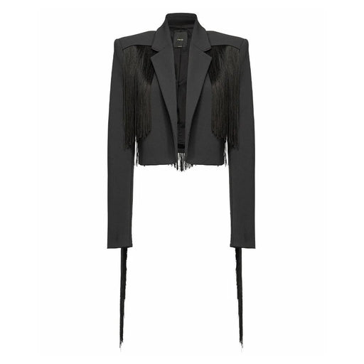 Original price $556.77Current price $330.09| /Pinko short crepe jacket with fringe decoration on the front, back and along the sleeves