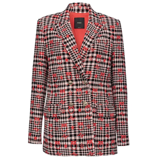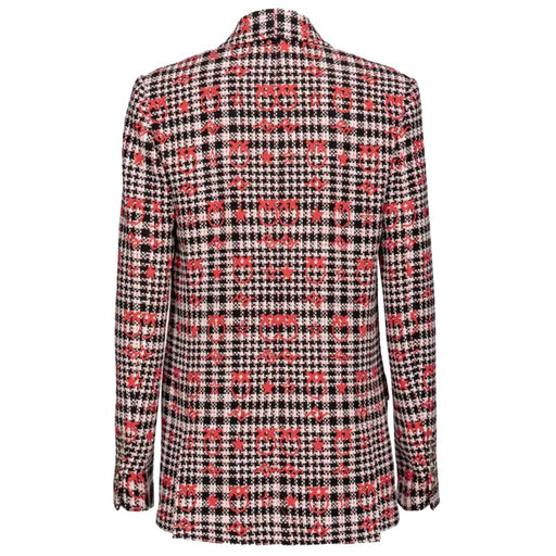 Original price $459.39Current price $276.64| /Pinko double-breasted jacquard jacket in red, white and black cotton yarn with Pinko logo embroidery, two front pockets, peak lapel collar