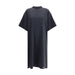 Balenciaga’s Long T-shirt Dress is a bold, modern piece that plays with casual aesthetics and luxury. It features a classic ribbed crew neck, which adds a touch of sophistication, and wide three-quarter sleeves that lend a relaxed, chic air. The brand’s iconic tone-on-tone printed logo on the back offers an understated yet distinctive detail. The worn vintage design gives a worn and contemporary effect, making this dress unique and trendy. Perfect for a casual look but with a high-fashion edge.