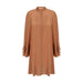 Silk Chemisier Dress by Chloé featuring a midi style, a mandarin collar, a concealed front button fastening, puff and ruffle sleeves, a monochrome pattern, and a regular fit.