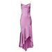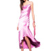 Pinko long sleeveless dress in shiny hammered satin. Relaxed fit with straight neckline with thin straps and draped details. Asymmetrical skirt with ruffles. Invisible zipper at the center back.