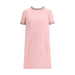 Valentino’s jeweled Mini Dress is an elegant and refined piece, featuring short puff sleeves that add volume and femininity. The neckline as well as the sleeve hems are decorated with shiny jewels and pearls, adding a luxurious touch to the design. The trapeze silhouette gently widens at the bottom, creating a fluid and sophisticated effect. The monochrome pattern and back zipper closure complete the look, making this dress ideal for special occasions, where elegance and detail take center stage.