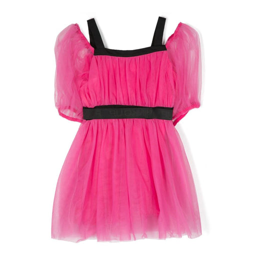 Original price $459.67Current price $276.80| /Pinko tulle dress with semi-sheer multi-layered ruffled design, fitted waist, short balloon sleeves and flared design.