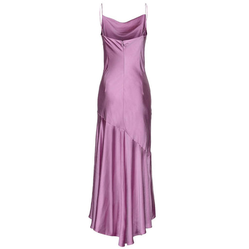 Original price $421.98Current price $338.23| /Pinko long sleeveless dress in shiny hammered satin. Relaxed fit with straight neckline with thin straps and draped details. Asymmetrical skirt wit...