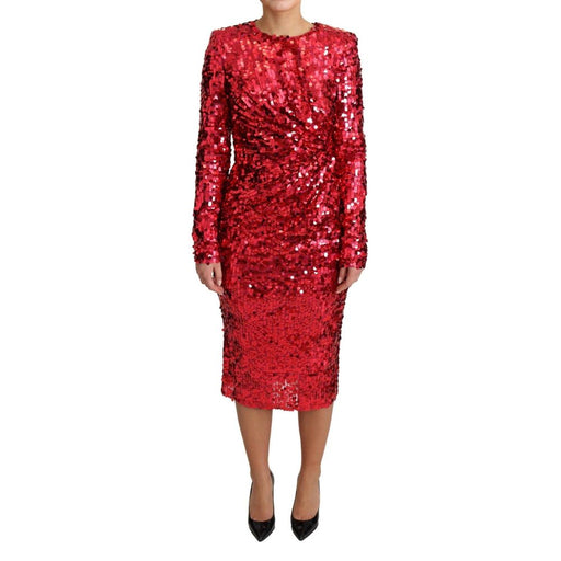 Original price $2,956.46Current price $923.71| /Brand new Dolce & Gabbana red dress with stitched sequins Round neck and long sleeves Concealed back zip closure Padded shoulders and front dr...