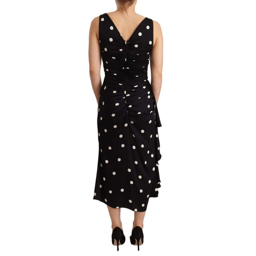 Original price $1,818.46Current price $1,052.34| /Dolce & Gabbana sleeveless silk dress with V-neck and dot print, zip closure on the back
