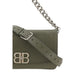 Leather Shoulder Bag by Balenciaga, adjustable and removable flat handle, removable chain handle, single interior compartment, front flap closure and three-dimensional plaque with iconic brand logo with hook.
