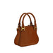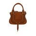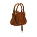 Calfskin Marcie Handbag by Chloé, double rigid leather top handle, removable and adjustable leather shoulder strap, top zipper closure, front flap with iconic leather tassel detail, iconic brand monogram press-stamped on front, open front pocket hidden by flap, single interior compartment.
