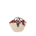 Dolce&Gabbana’s raffia Handbag features two top handles with an appliquéd floral fabric detail, adding an elegant, spring-like touch. The iconic leather logo is applied on the front, giving a distinctive touch to the design. The adjustable and removable shoulder strap offers versatility, allowing the bag to be carried by hand or over the shoulder. Inside, the bag features a single compartment with a floral lining that further enhances the design. The top closure features a drawstring, providing security and practicality. A perfect mix of style, elegance and functionality.