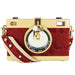 Dolce & Gabbana camera case bag made of red python leather and gold hard plastic, metal details, leather and canvas shoulder strap, padlock closure