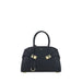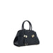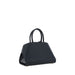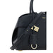 Calfskin Hug Handbag by Ferragamo, monochrome geometric design, two rigid leather top handles, gold-tone details, removable and adjustable shoulder strap, iconic brand monogram press-stamped on front, interior hook-and-eye closure, single internal compartment.