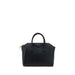 Calfskin Antigona Handbag by Givenchy, geometric pattern, two rigid handles on top, closure on top by zipper with double slider, contrasting iconic brand monogram on front, adjustable and removable shoulder strap, attached support feet at base of bag.