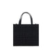 Cotton G-Tote Mini Handbag by Givenchy’s, double rigid flat leather handles, removable and adjustable flat webing shoulder strap, iconic brand monogram embroidered on front, single interior compartment, interior welt pocket, all-over weave with iconic all-over repeated brand logo, metal feet applied as support at base of bag, logoed press studs.