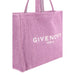 Raffia G-Tote Shoulder Bag by Givenchy, features single interior compartment, contrasting iconic brand monogram on front, two flat top handles, geometric design.
