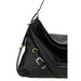 Calfskin Voyou Shoulder Bag by Givenchy, flat shoulder strap giftable by contrasting metal buckles, top zipper closure, leather straps detail applied to front panel, soft design, iconic brand monogram printed in contrasting press-stamp on front, interior slit pocket, single interior compartment.
