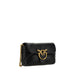 Calfskin Love Baby Shoulder Bag by Pinko, front closure with magnetic button, iconic gold-plated Love Birds logo embossed on the front, quilted and padded design, double internal compartment, sliding chain shoulder strap, iconic brand monogram embroidered tone-on-tone on the back.